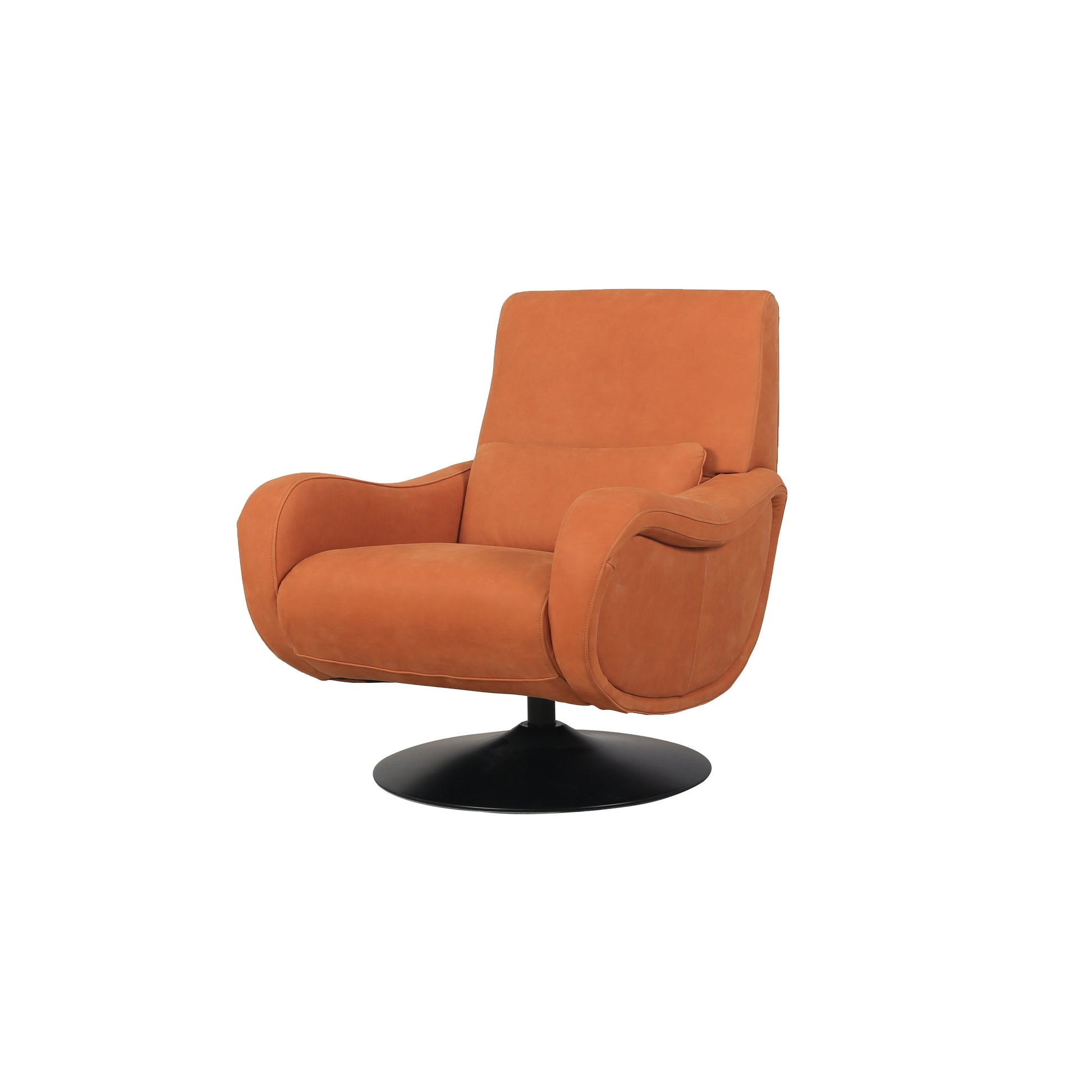 This Madison swivel chair delivers vintage charm with modern comfort. Featuring distinctive retro-inspired arms and a sculptural silhouette, this chair makes a bold statement in any living room or home study. Upholstered in your choice of luxurious leather or premium fabric, it sits atop a smooth swivel base for added functionality. Exceptionally comfortable and effortlessly stylish, the Madison is where timeless design meets everyday ease.