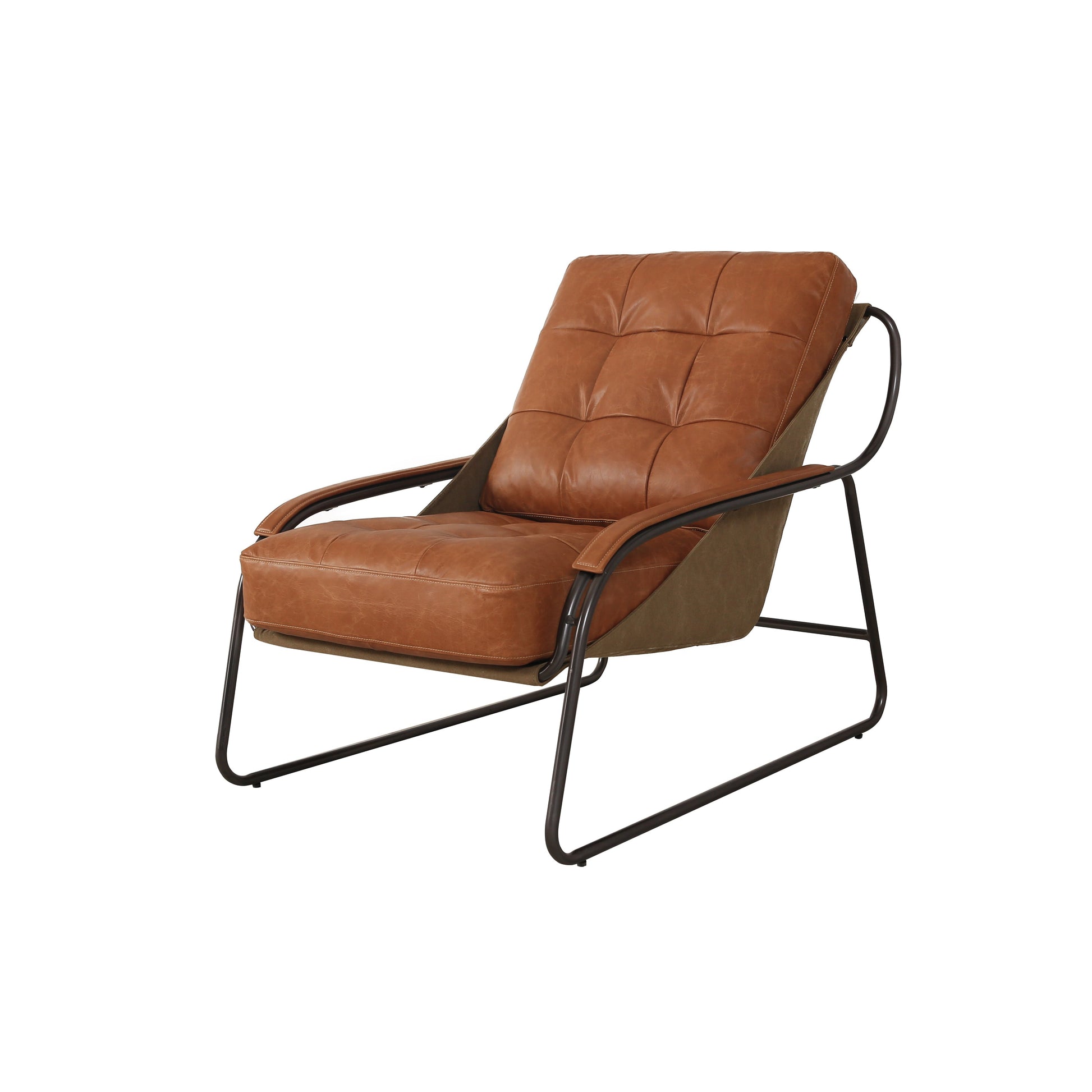The Halden occasional chair blends vintage charm with modern comfort. Upholstered in soft leather with elegant button tufting, this slingback design is supported by a sleek, sculptural metal frame that adds a touch of industrial sophistication. Filled with a plush combination of memory foam and duck down, it offers an irresistibly comfortable lounge experience. A refined yet relaxed piece, perfect for stylish interiors.