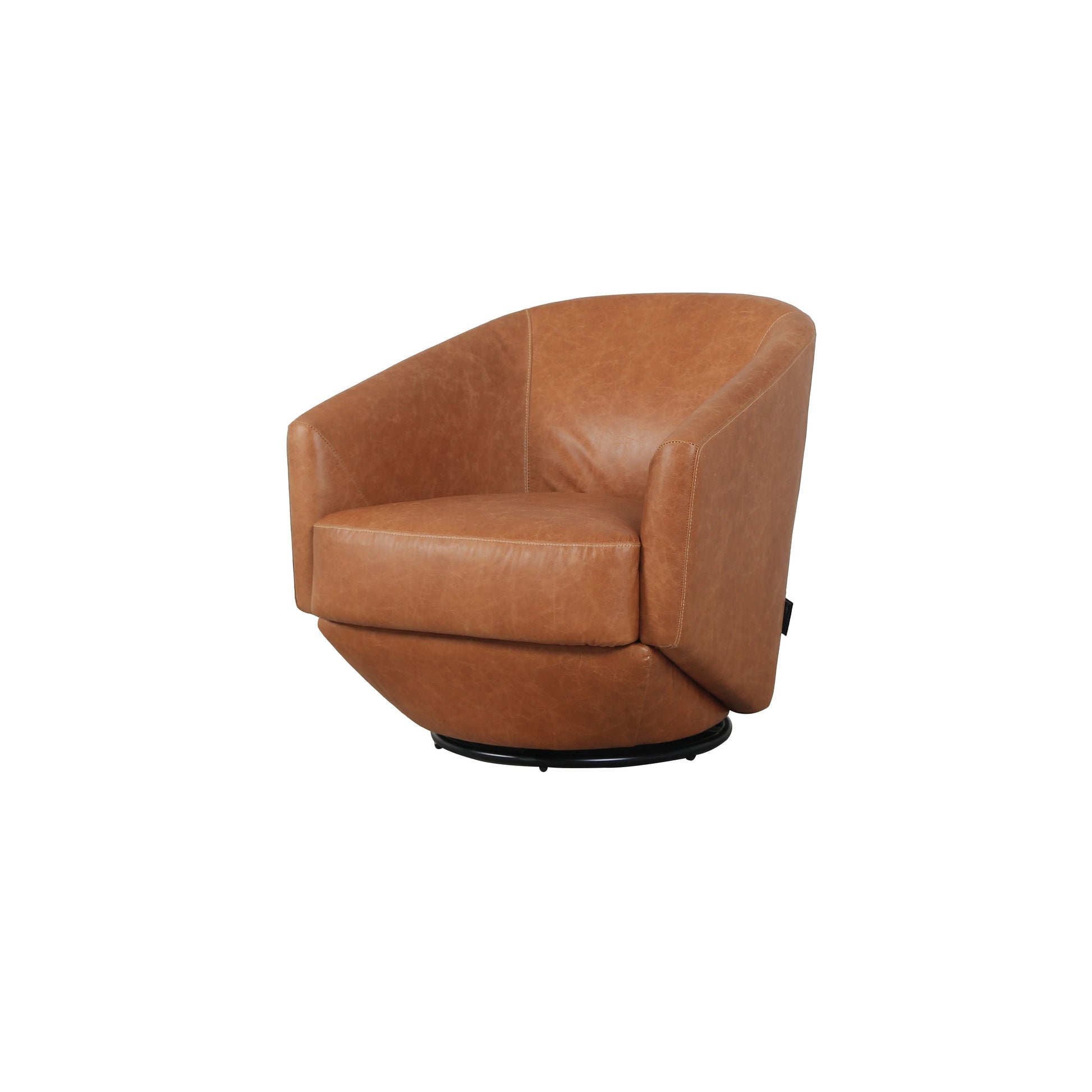 The Raval swivel chair brings retro sophistication to modern interiors. Upholstered in soft, luxurious leather, its sculpted form features subtle angular detailing that adds visual interest and edge. The smooth swivel base offers functional flexibility, making it a perfect fit for both stylish offices and relaxed living rooms. Compact yet bold, this chair delivers timeless character with a contemporary twist.