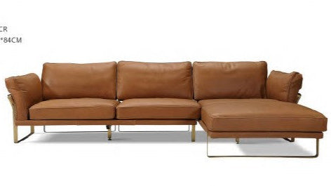 Refined elegance meets modern design in this Modern Luxe Leather Sectional. Draped in soft leather and filled with a sumptuous blend of memory foam and feather, this sofa offers elevated comfort with every sit. Its sleek silhouette is complemented by eye-catching brass buckle accents, adding a touch of sophistication and urban flair. Perfectly tailored for contemporary interiors, this piece is both a visual centerpiece and a luxurious retreat.