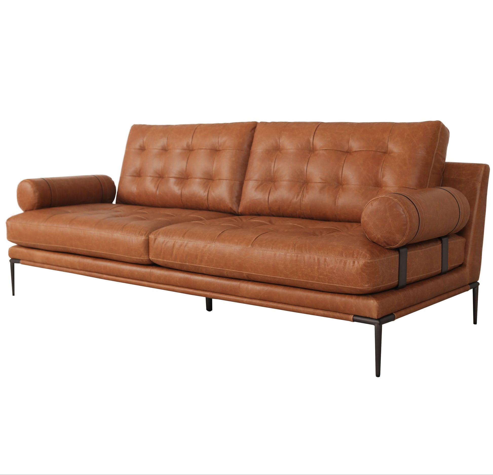 This Londoner leather sofa is a refined blend of modern minimalism and classic detailing. Featuring a slim silhouette, clean lines, and upholstered in supple, high-quality leather, this piece offers understated elegance for contemporary interiors. Button tufting on the back cushions adds a timeless touch, while the slender frame and bolstered arms keep the design fresh and sophisticated. A perfect balance of comfort and style, ideal for curated modern spaces.