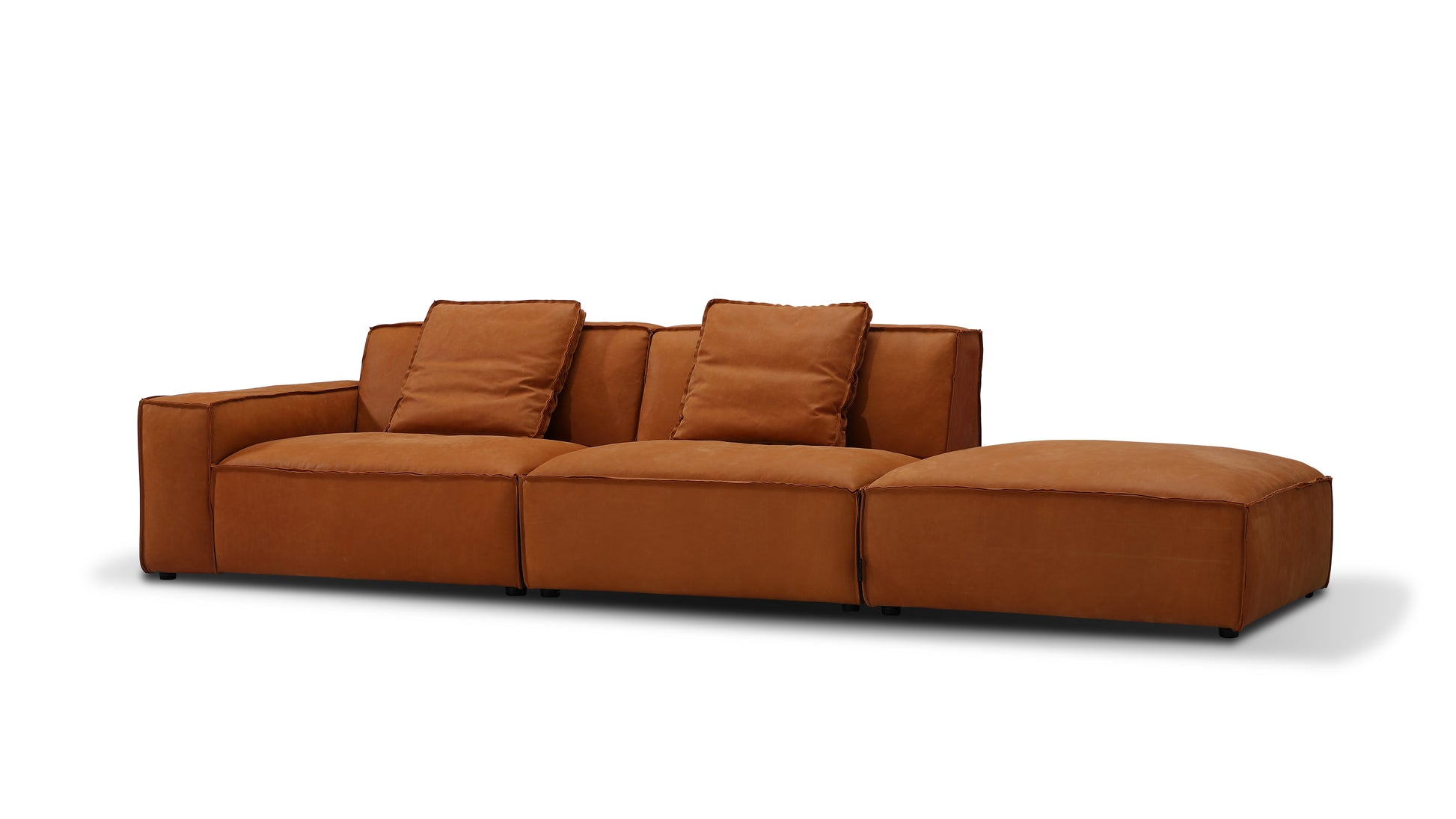 Versatile, bold, and effortlessly chic—this Ramblas modular leather sofa is designed to adapt to your lifestyle. This 3-seater features a moveable ottoman, allowing you to create a chaise lounge on either side for flexible, personalized comfort. Upholstered in rich, premium leather with a modern square silhouette, its clean lines and low profile make a refined statement in any contemporary space. A perfect fusion of form and function.