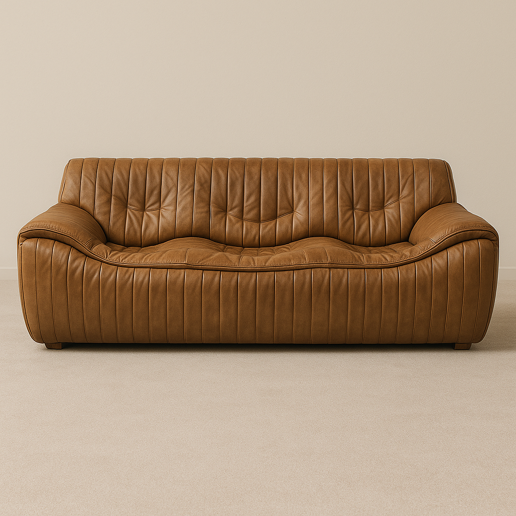 A statement in effortless luxury, the Mesa sofa is masterfully upholstered in soft Argentinian leather, offering a rich patina and unparalleled tactile appeal. Sculptural in form yet inviting in comfort, each curve is thoughtfully padded with a sumptuous blend of memory foam and feather, filling—cradling the body with tailored support. This piece embodies refined relaxation and timeless design, perfect for sophisticated living spaces.